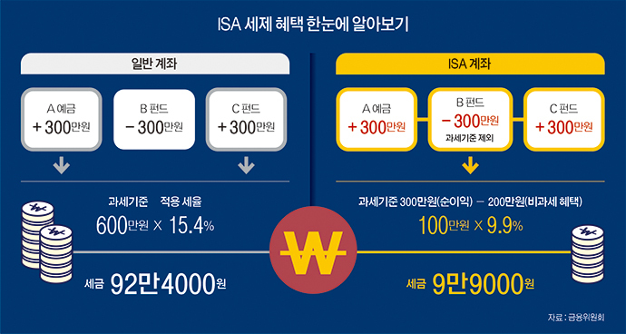 아래의 표처럼 ISA를 활용할 경우 비과세(200~400만 원) + 9.9% 분리과세이기 때문에 직접 투자 시 발생하는 양도소득세율 22%에 비해 많은 세제혜택을 받을 수 있습니다. 거기에 손익통산은 덤이고요.