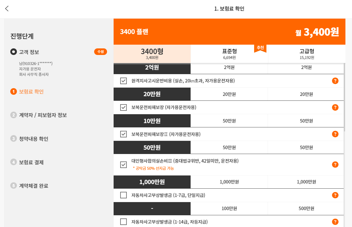 | 전체 보험료 | 3,300 | 3,400원 | 삼성화재 WIN |