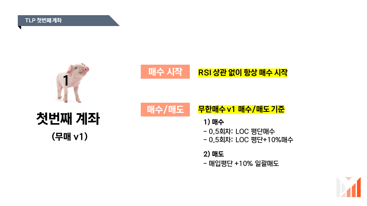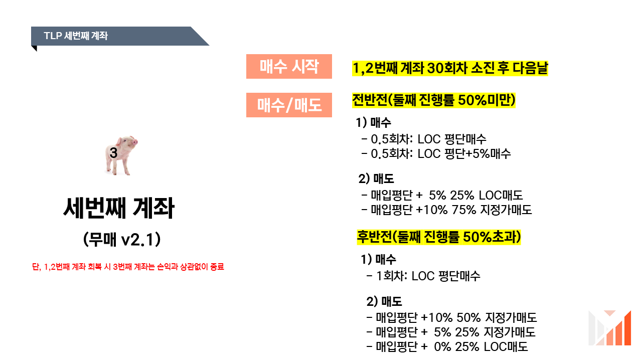 오늘은 라오어님의 TLP(아기돼지삼형제)법에 대해 소개해드려해요. 라오이님 무한매수법의 수익률은 유지하면서 안정성을 한층 높인 투자방법 입니다.