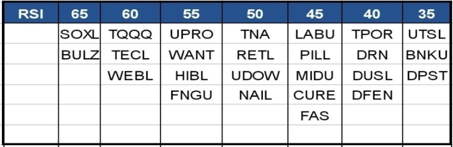 라오어님은 무한매수법의 성공확률을 높이기 위해 각 종목의 RSI 가이드라인을 제시해주셨어요.