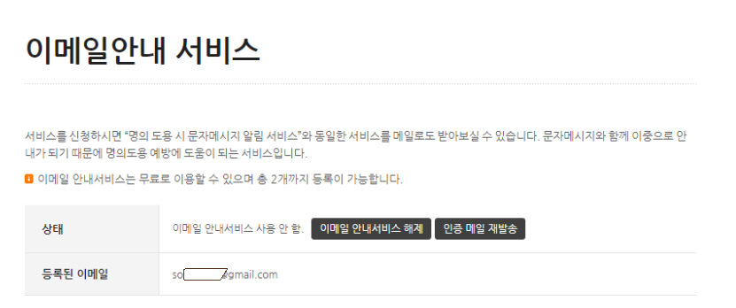 3. 수신받고자 하는 이메일 입력 후 해당 이메일에서 인증확인하면 끝!