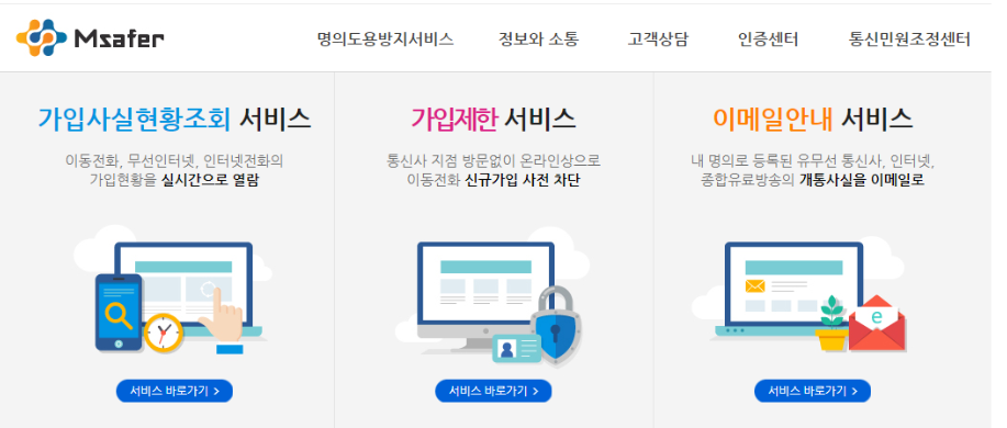 명의도용방지서비스(Msafer)를 왜 가입해야하며 어떻게 가입해야하는지 여기에 더불어 원천적으로 명의도용을 방지할 수 있는 방법까지 제가 직접 해본 경험을 함께 공유해드리도록 하겠습니다.