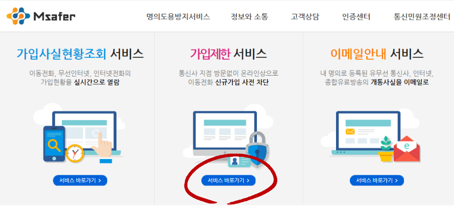 ▼ 명의도용방지서비스(Msafer) 바로가기 ▼