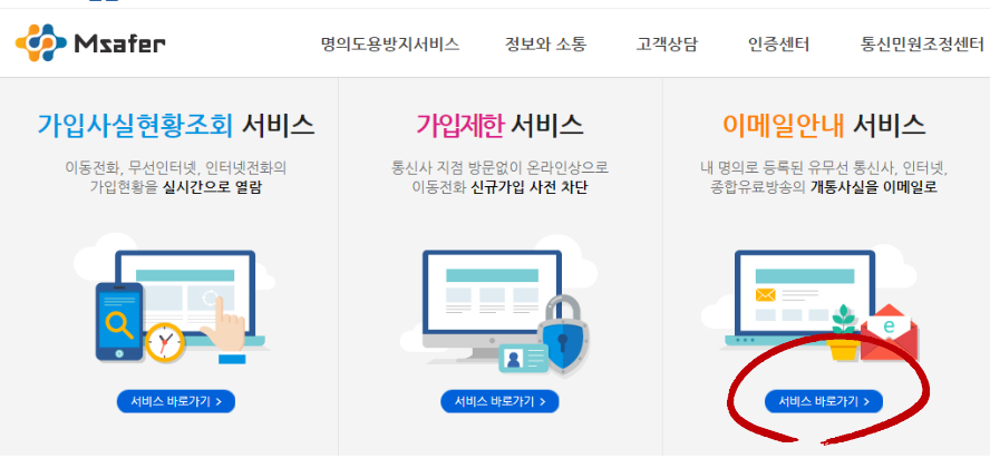 명의도용방지서비스(Msafer) 바로가기 ▼