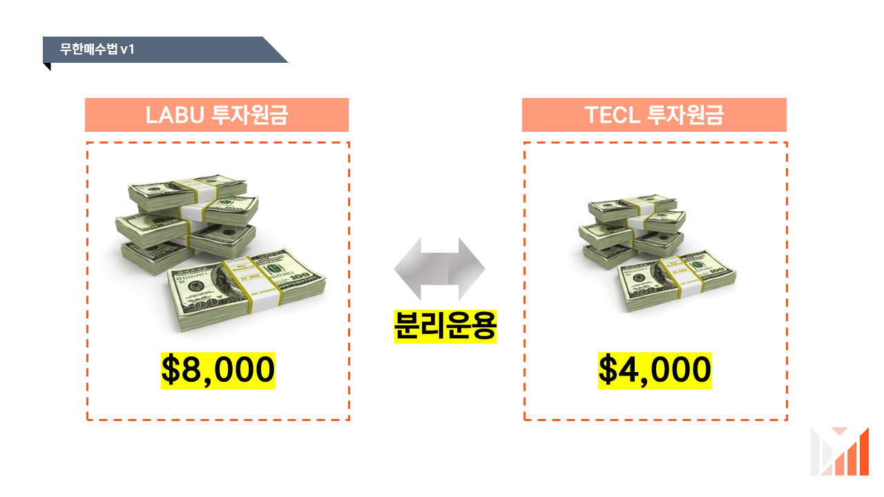 LABU를 투자한지 10일 후, 남아있던 $4,000로 TECL을 추가적으로 무매하기로 했다 가정해볼께요. 이렇게 여러 종목을 할 경우에는 독립적으로 원금을 각각 설정해주어야 하며, 서로 섞지 않아야 합니다.