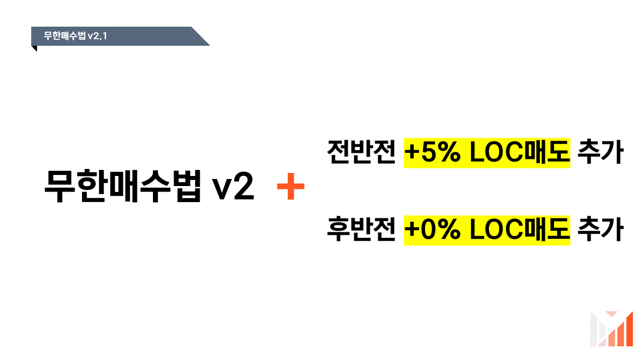 기본적으로 무매v2.1은 v2와 기본적인 구조는 동일합니다. 단 LOC매도를 신설하여 더 세분화를 진행하였다는 것이 개선점이죠.