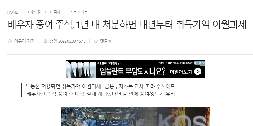 하지만 다행이도 23년 1월 1일에 시행 예정이였던 해당 규정이 25년 1월 1일로 2년 미뤄지면서 부동산과 다르게 주식의 경우에는 부부에게 증여 후 바로 증여가 가능합니다. 단, 25년이 되는 시점에는 아래에 나와있는 것처럼 해당 소득세법이 시행될 수 있으니 절세전략을 이용하기 전 꼭 확인이 필요합니다.