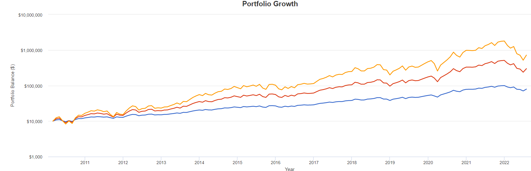 3배 레버리지를 투자하는 많은 분들이 TQQQ가 UPRO, SOXL보다 성과가 좋을까?라는 궁금증이 있으실 겁니다. 해당 ETF의 상장 이후 기간 동안 백 테스트한 결과를 비교하면 아래와 같습니다.