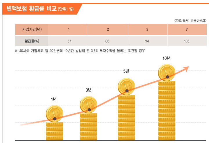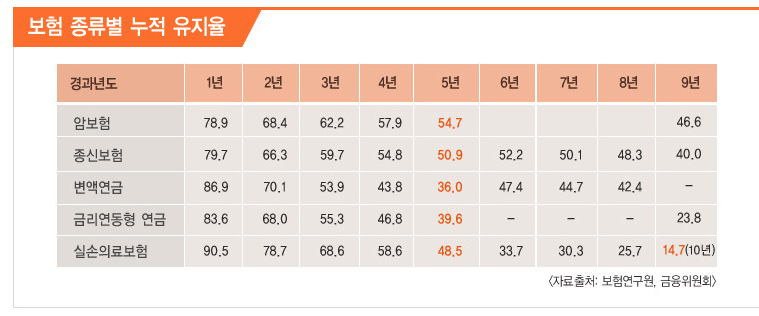 생명보험 계약 후 5년이 지나면 절반 정도가 해약합니다. 여기서 2년 더 지나면 남는 계약은 10건 중 4건에 그친다고 하죠. 놀라울 정도로 높은 비율입니다.