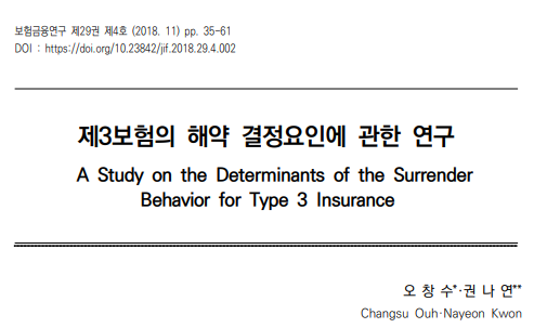 2018년 11월에 발표된 논문을 통해 보험 중도해약에 영향을 미치는 요소를 확인할 수 있었습니다.