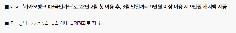 - 이벤트 기간 직전 1년간 KB국민카드의 다른 이용 이벤트에 참여하여 혜택을 받은 경우 제외