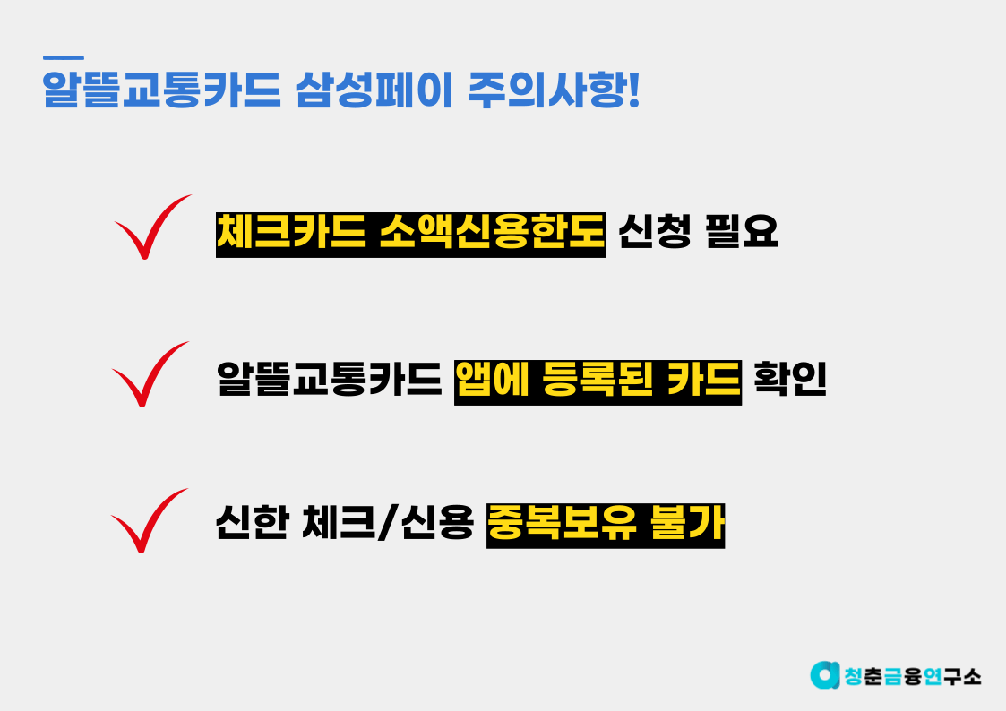 삼성페이 등록 전 알뜰교통카드 앱에 접속해서 등록한 카드가 맞는지 한번 확인해보세요!