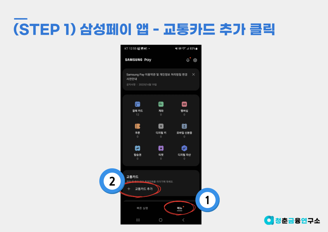 삼성페이에서도 알뜰교통카드가 되면 참 좋을텐데..라고 생각하신 적 없으신가요? 저도 핸드폰 케이스뒤에 알뜰교통카드를 들고 다니는게 참 불편했는데요.