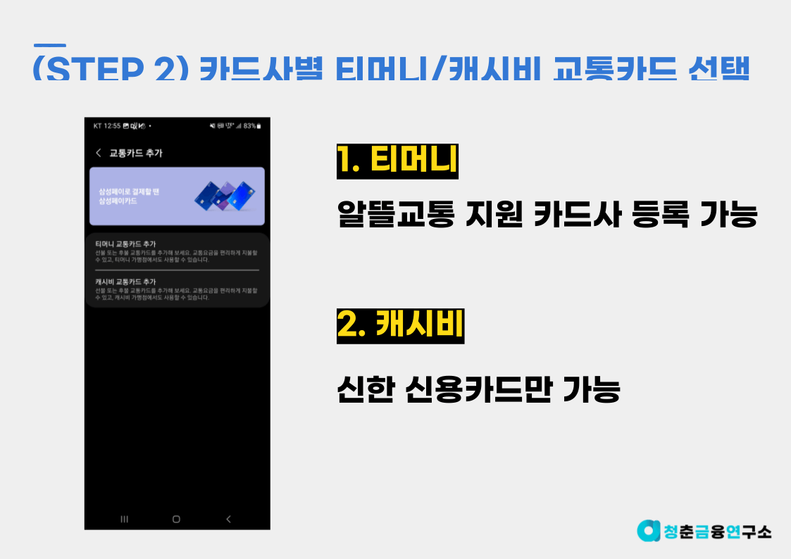 삼성페이 등록 전 알뜰교통카드 앱에 접속해서 등록한 카드가 맞는지 한번 확인해보세요!