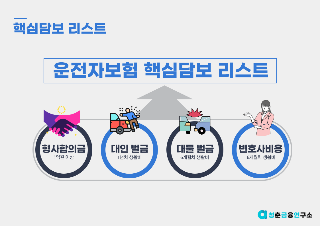 자, 가장 저렴한 운전자보험을 찾는 방법은 알았는데 그 보험이 핵심담보가 부실하거나 불필요담보가 많으면 안되겠죠? 이제는 운전자보험의 핵심담보에 대해 알아볼 차례입니다.