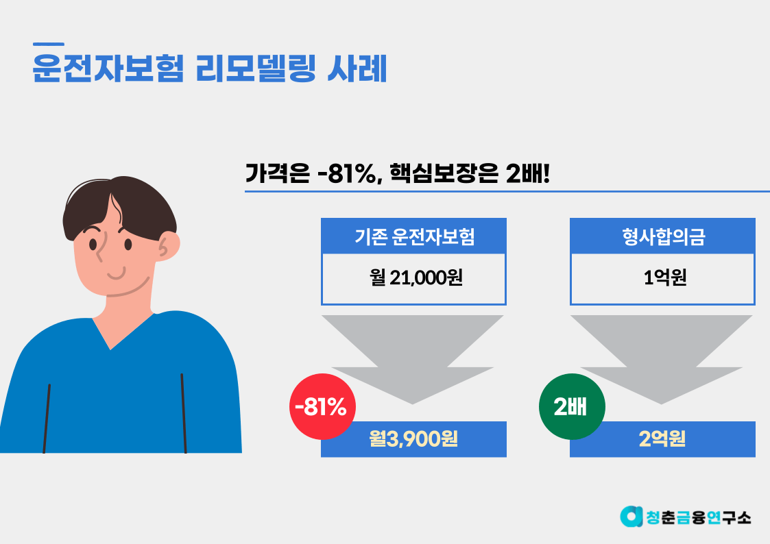 실제로 제 동생은 월에 2만 1천원 운전자보험을 가입 중에 있었는데요. 제가 직접 온라인 다이렉트 운전자보험으로 바꿔주면서 월에 3,900원, 연 20만원 이상의 보험료를 절감할 수 있었습니다.