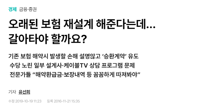 앞에서도 잠깐 언급하였지만 우리가 신규 보험가입 보다 더 주의해야 할 것은 '보험 리모델링'입니다.