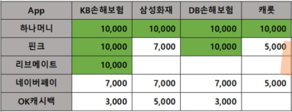 위에 표에서 보셨듯 하나머니의 경우 가장 다양한 보험사에서 가장 좋은 조회 캐시백 이벤트를 진행 중이기에 가장 1순위로 진행하시는 걸 추천드립니다.