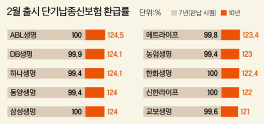 사람들이 10년간 보험납입을 유지하는 것에 부담을 느끼자 최근 보험사들은 5~7년만 납입을 하는 단기납 종신보험 상품을 공격적으로 출시하고 있는데요. 같은 보장인 경우 납입기간이 줄어드는 만큼 월 납입 보험료는 크게 올라가는 부분이 있습니다.