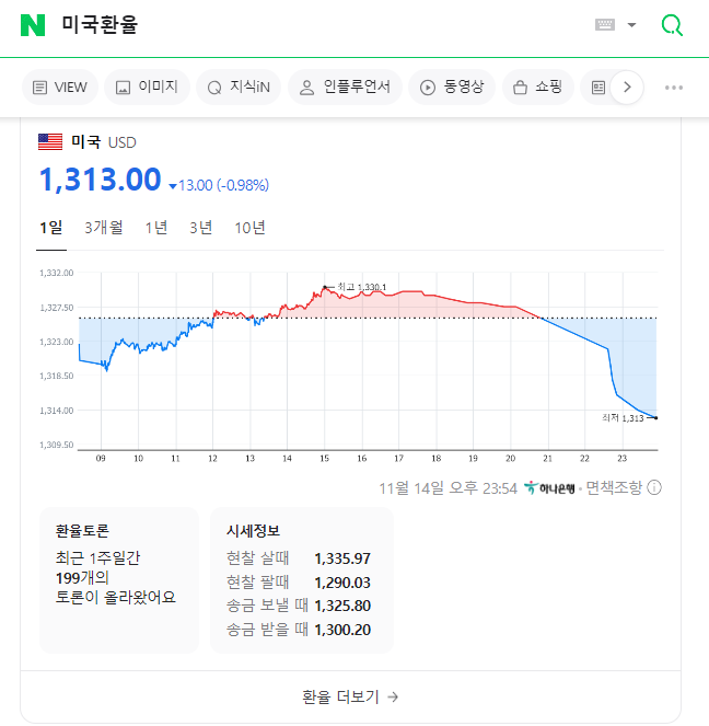 환율 캡쳐본은 환율 정보를 제공하는 사이트 어디서든 증여일 기준의 환율정보를 캡쳐해주시면 됩니다. 가장 쉽게 확인할 수 있는 네이버에서 아래와 같은 화면을 캡쳐해주시면 됩니다.