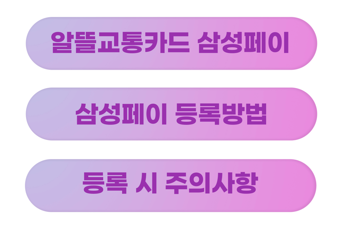 오늘은 알뜰교통카드 즐겨찾기 등록방법과 주의사항에 대해 알아보았습니다. 알뜰교통카드를 조금 더 쉽게 사용하실 수 있도록 삼성페이 등록방법도 정리해 놓았으니 궁금하신 분들은 아래 글을 참고해주세요.