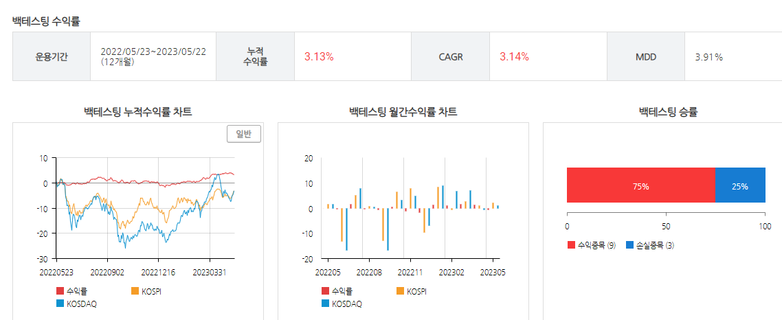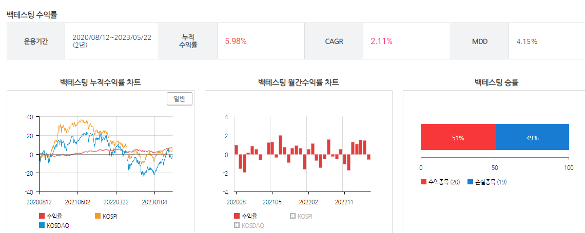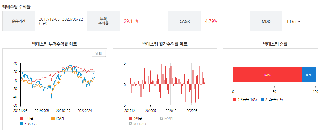 책에서 나온 20년간의 백테스트 성과보다는 좋지 않았지만