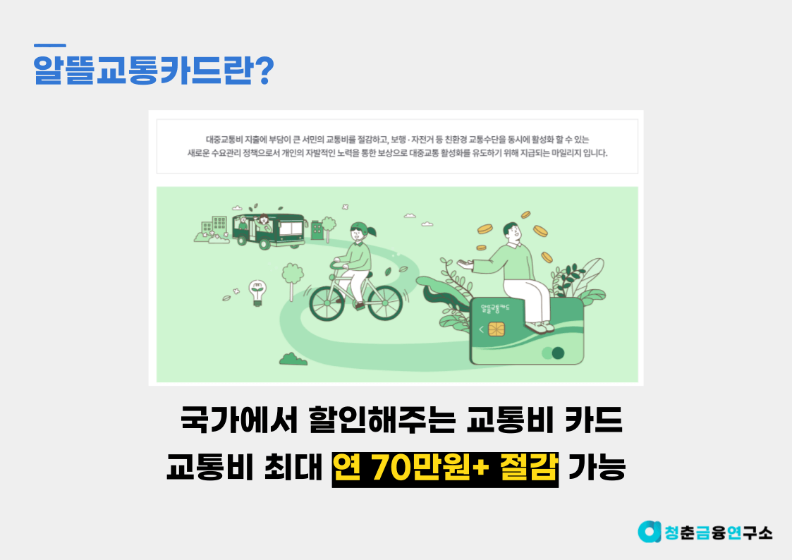 내 월급 빼고는 다 오르는 지금.. 매월 10만원 이상 나가는 교통비 부담되시지 않으신가요? 오늘은 최대 연 70만원 이상 교통비 절감이 가능한 알뜰교통카드에 대해 소개해드리려 합니다.