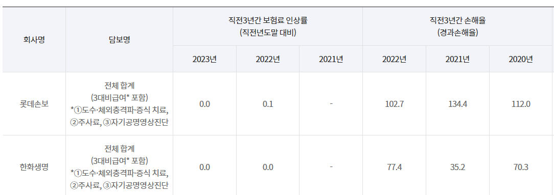 그렇기에 지난 3년간의 보험사별 손해율 및 보험료 인상률을 참고하면 어떤 보험사의 실비(실손) 보험을 선택해야 하는지 기준을 세우실 수 있으실 겁니다.