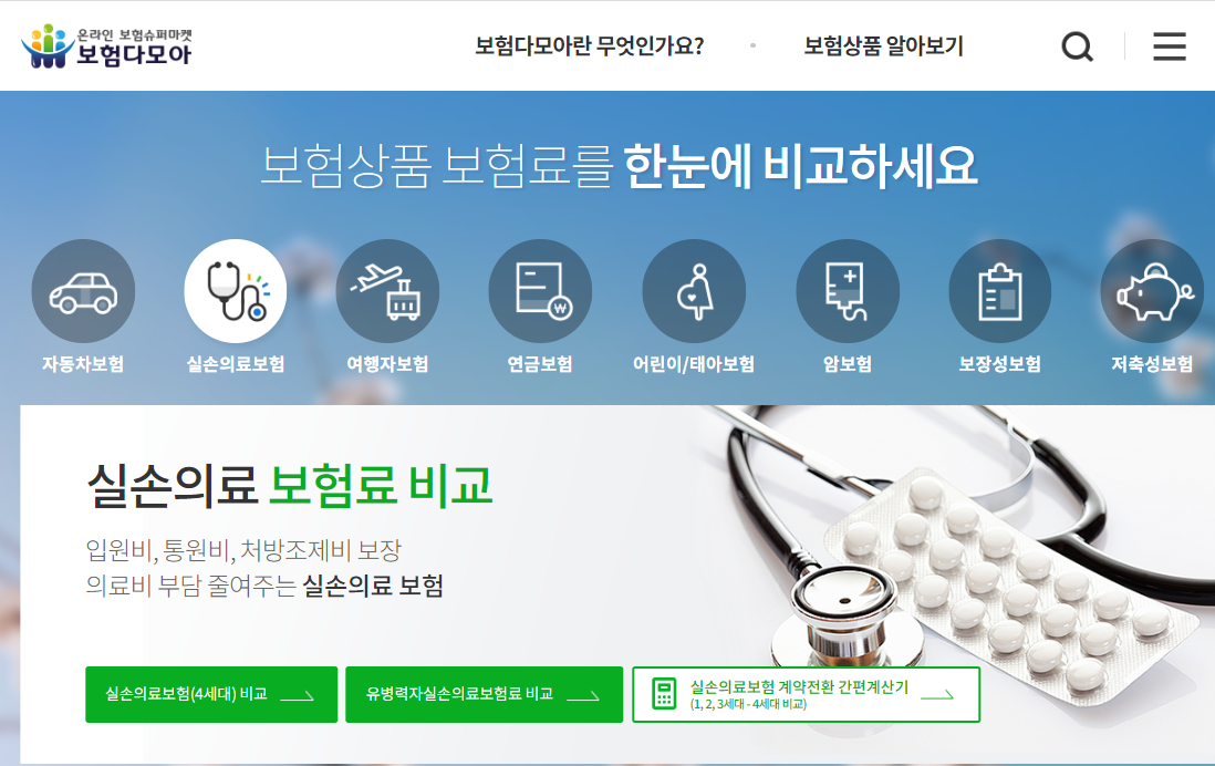 실손(실비) 보험을 비교하는 사이트는 역시 보험다모아입니다. 보험다모아의 경우 손해보험협회 및 생명보험협회에서 운영되는 사이트이기에 믿고 이용하셔도 됩니다.