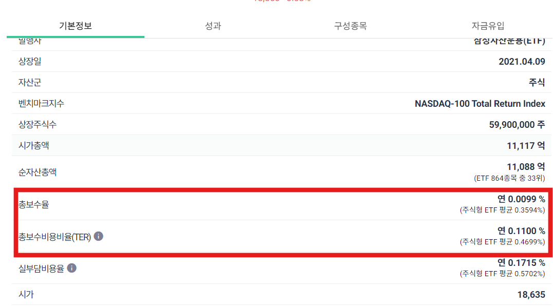해당 ETF역시 지수를 추종하고 경쟁이 치열한 상황인데요. 이 중 KODEX 미국나스닥100TR 상품의 경우 총보수율이 0.01%보다 낮은 0.0099%로 주식형 ETF중 가장 낮은 수수료율을 보여주고 있죠. 지난 10년간 20%가까운 연평균 수익률에 국내에서 상장된 주식 ETF 중 가장 낮은 수수료율이라니 이보다 더 투자에 적합한 ETF는 없다고 생각합니다.