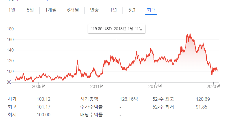 위 그래프에서도 보듯이 인플레이션을 잡기 위해 1년도 안 되는 시기에 0%에 가깝던 기준금리가 무려 5.25%까지 빠르게 상승한 상황입니다. 이러한 환경으로 인해 미국 장기채 ETF인 TLT 역시 좋지 않은 가격흐름을 보여주고 있는데요.