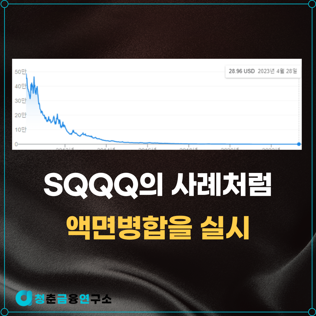 결론부터 말하자면 앞서 1,2번으로 인한 상장폐지만 없다면 액면병합을 통해 TQQQ가 지속될 가능성이 높다고 생각합니다. 그 대표적인 사례가 TQQQ의 인버스 버전인 SQQQ인데요.