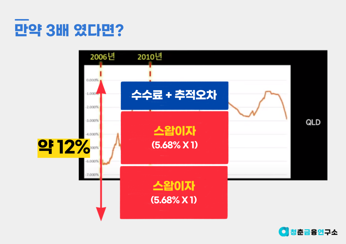 실제 라오어님 영상을 참고하게 되면 2006년 시점 수수료 + 추적오차 + 스왑이 자를 모두 합쳤을 때의 값과 QQQ의 차이가 거의 유사하다는 것을 검증했는데요.